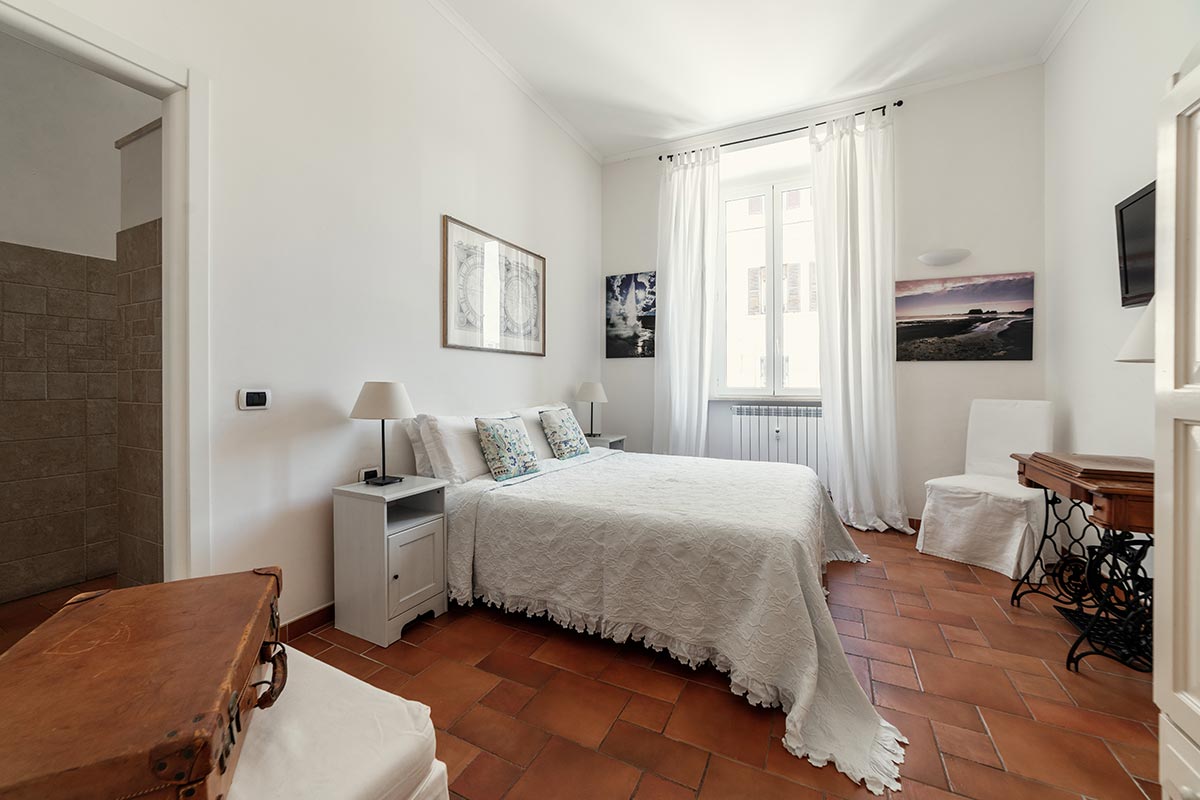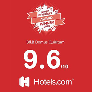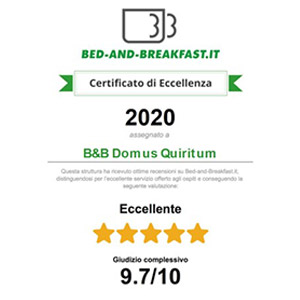 Il B&B Domus Quiritum è composto da tre camere con bagno privato, una grande sala comune ed un piccolo appartamento. Le tre camere, dell’Artista, del Viaggiatore e dell’Astronomo, caratterizzate da alti soffitti e luminose finestre che affacciano su Piazza dei Quiriti, dispongono di un letto con materasso e cuscini anallergici, ergonomici e traspiranti in memory foam, aria condizionata, televisore 32’’ e connessione Wi-Fi. Le comode sale da bagno, dotate di finestra propria, comprendono tutte un’ampia cabina doccia e sono interne alle camere da letto. Sono a disposizione la biancheria da letto e da bagno, i prodotti per il bagno e l’asciugacapelli. La prima colazione viene attualmente servita presso il bar vicino. Biscotti, torte, o ciambellone, succhi di frutta e miele saranno sempre presenti per la colazione o per un tè pomeridiano.